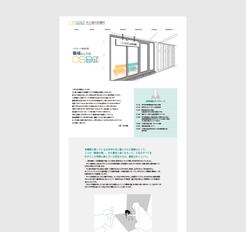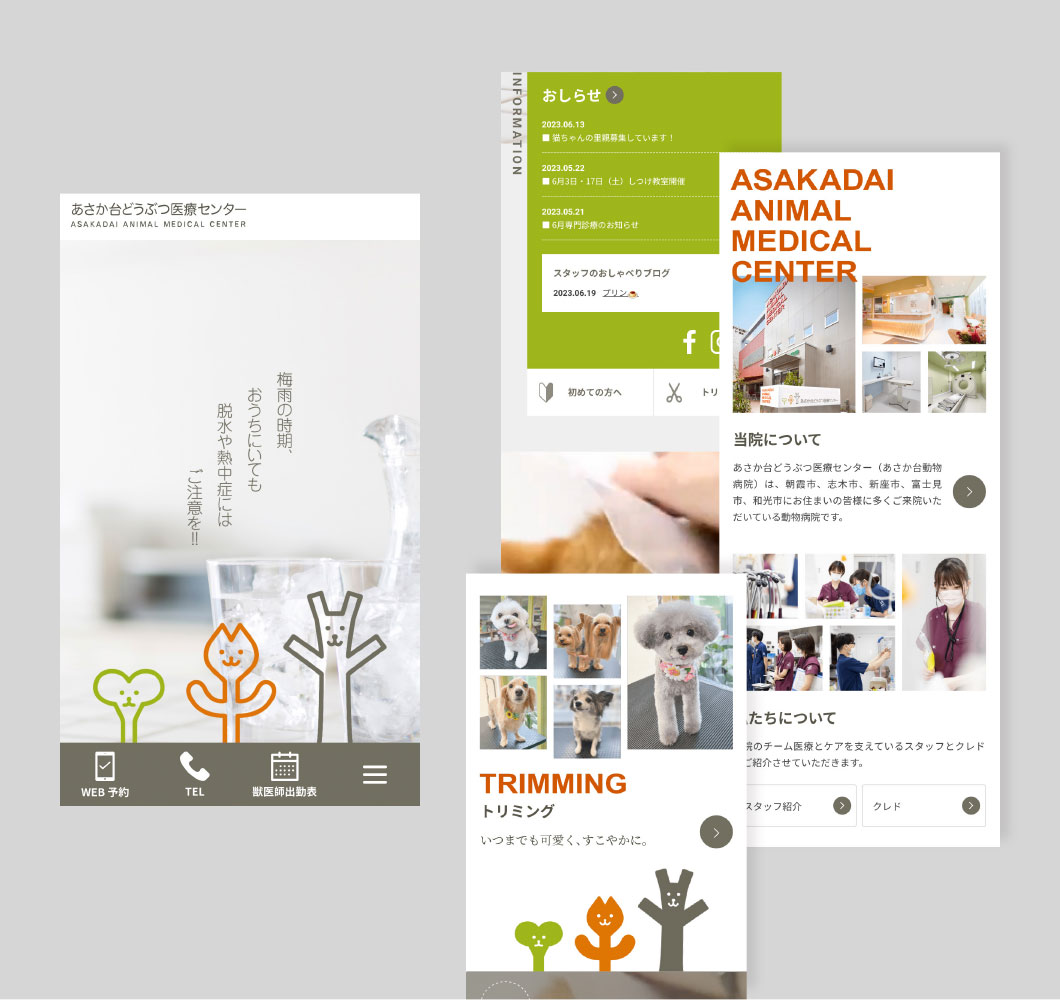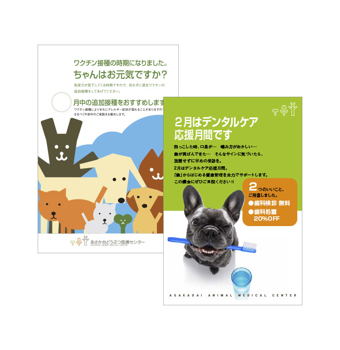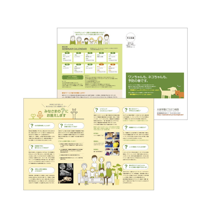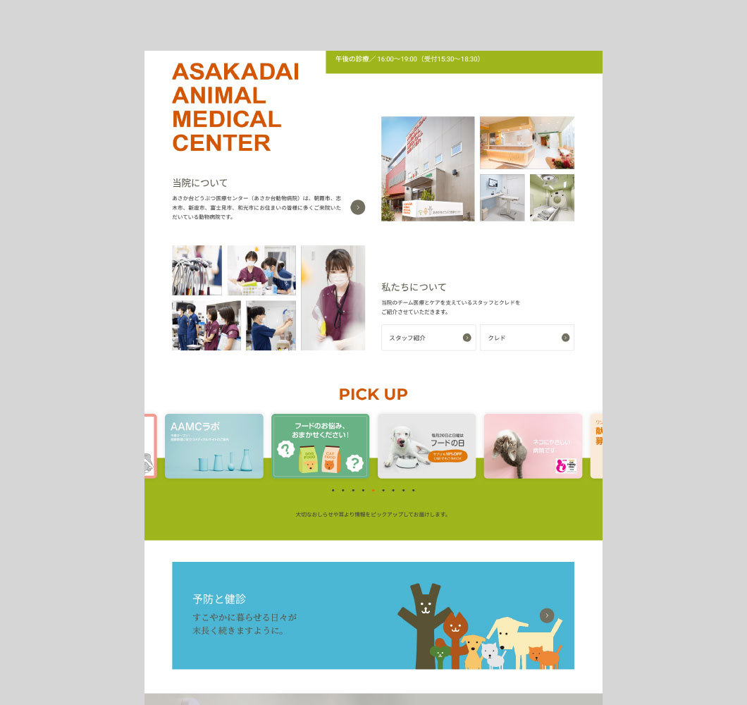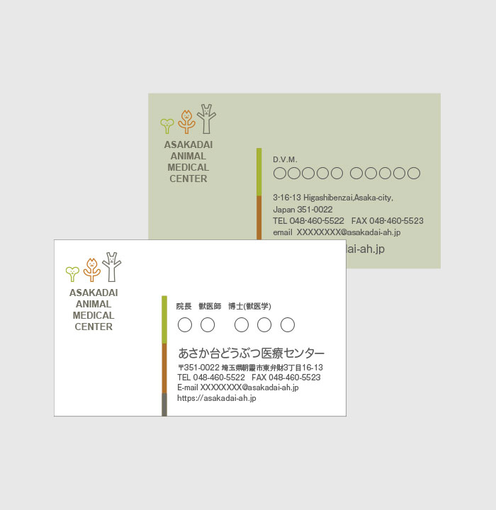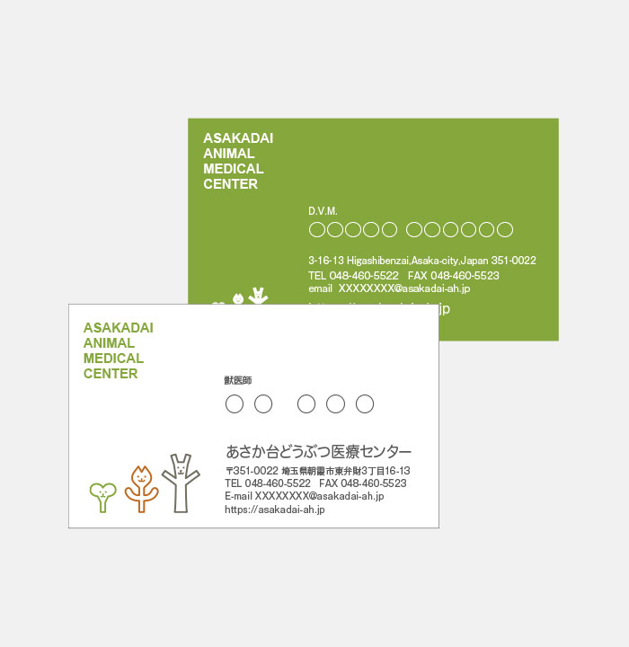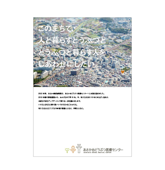 あさか台動物病院様とのおつきあいは2008年頃から始まり、2009年に現在のロゴマークデザインをご提案したのを機に、薬袋やステーショナリー、院内サインからウェブサイトに至るまで、コミュニケーションメディア全般をお任せいただいていたという関係基盤がありました。